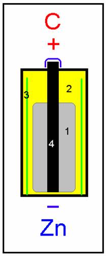 elektrického prúdu a postupné vyčerpávanie článku. Zápornú elektródu článku tvorí dutý zinkový valec, kladnú elekródu uhlíkový kolík, ako elektrolyt slúži chlorid amónny. Burel je depolarizátor (predlžuje životnosť článku). Pri konštrukcii starších typov článkov sa často používali aj ťažké kovy (Ni, Cd). Tieto predlžovali životnosť a zlepšovali niektoré vlastnosti článku. Ťažké kovy sú však toxické, poškodzujú prírodu a zdravie človeka, preto sa od ich využitia upúšťa. |
